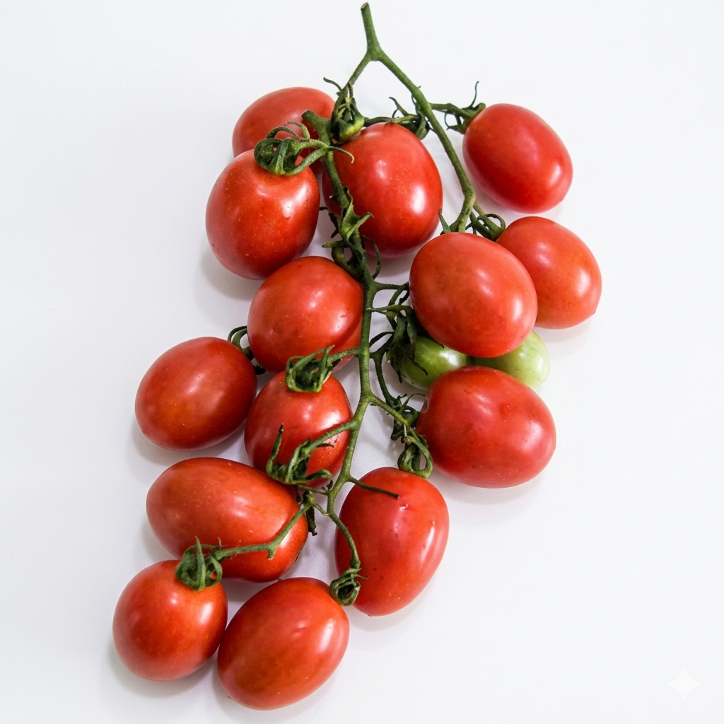 A Grappoli d'Inverno produces small plum-style tomatoes similar to mini Roma types with dense flesh, high sugar content, and excellent flavour. Fruits store exceptionally well when harvested on trusses and kept in cool, dry conditions.